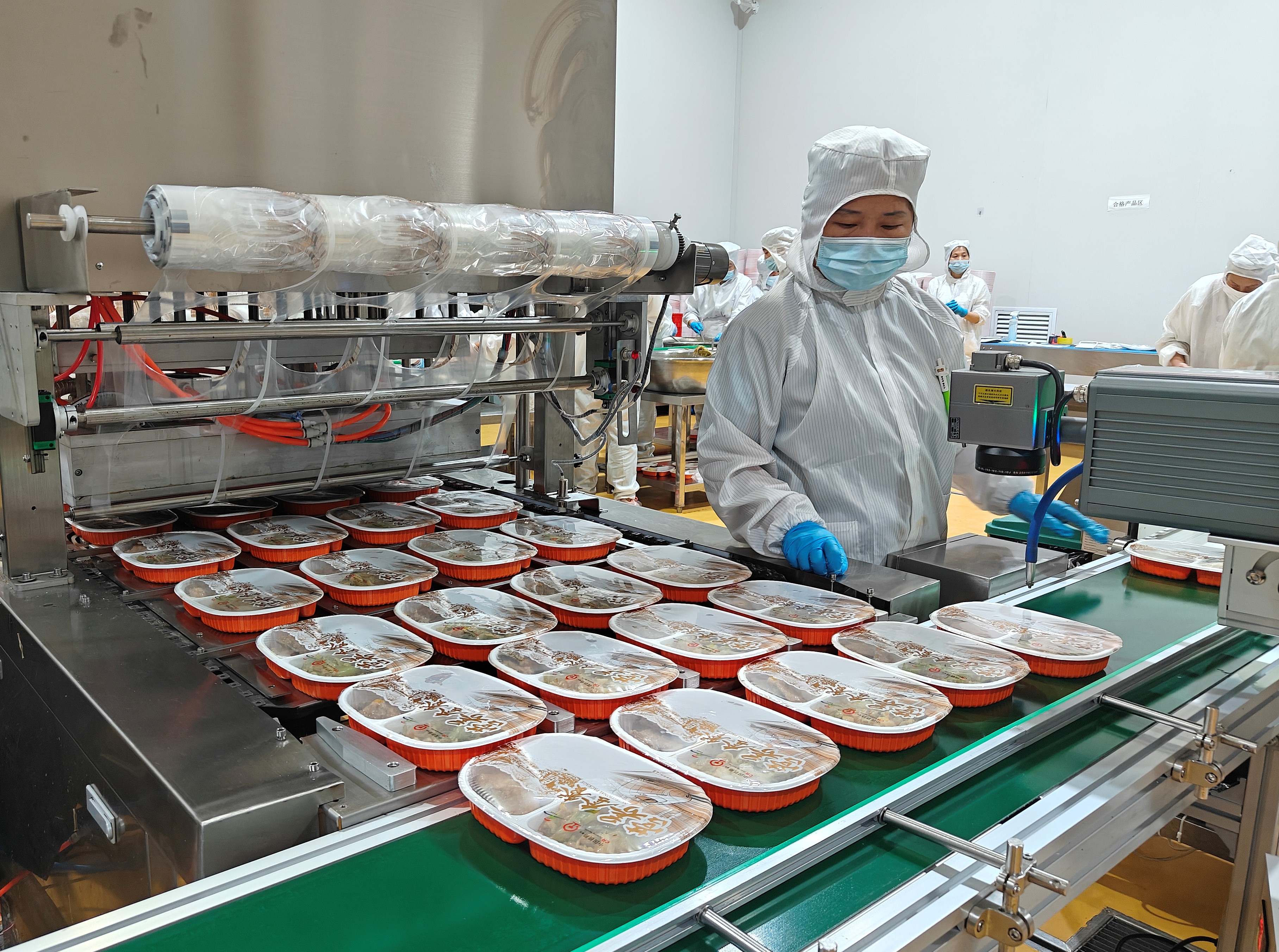 目前,金德利冷鏈配餐生產(chǎn)線已實現(xiàn)全程自動化無縫銜接。從烹飪、檢測、分裝,到覆膜、賦碼、貼標,再到冷凍保鮮和智能裝箱,整套流程貫穿智能化與標準化理念。每日超過4000份高品質(zhì)冷鏈餐食通過高速列車送達旅客手中,以實際行動踐行“國企餐飲 安全優(yōu)質(zhì)”的品牌承諾。